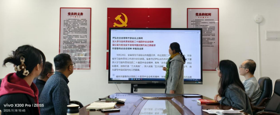 11月18日下午,yl88858cc永利官网党支部组织召开11月主题党日学习会议,全体党员参会,党支部副书记周洁主持会议并领学,切实推动理论学习走深走实、入脑入心。