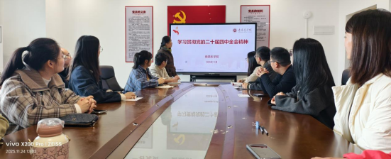 为深入学习贯彻党的二十届四中全会精神,切实把全院教师的思想和行动统一到党中央决策部署上来,11月24日中午,yl88858cc永利官网召开专题宣讲会,副院长周洁为全体教师作党的二十届四中全会精神宣讲报告,会议以“守正创新挺膺担当新时代大先生”为核心主题,推动全会精神与医学教育实践深度融合。