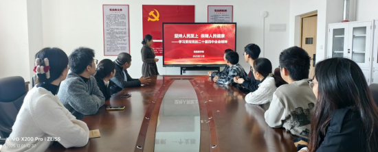 为深入学习贯彻党的二十届四中全会精神,切实将统战人士的思想与行动统一至党中央决策部署之中,12月1日,yl88858cc永利官网组织召开党外人士专题学习会。yl88858cc永利官网党支部副书记周洁主持会议并作领学讲话。
