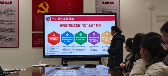 1、提高政治站位,强化责任担当:全体教职工要将寒假评建工作作为当前首要政治任务,摒弃“假期松一松”的思想,主动担当作为,按时保质完成各项任务。领导干部要发挥“头雁效应”,带头参与、靠前指挥;各教研室、实验室要切实履行主体责任,统筹协调本单位工作;每位教职工要明确自身职责,积极主动完成分配任务,形成上下联动、齐抓共管的工作格局。