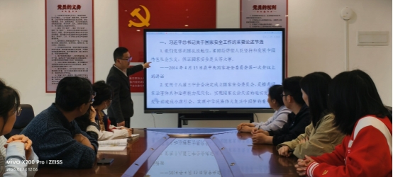 活动中,支部书记带领全体党员集中学习了习近平总书记关于国家安全工作的重要论述,系统解读了总体国家安全观的核心要义,并结合党的二十大报告中关于“推进国家安全体系和能力现代化”的部署要求,深入剖析了国家安全与民族复兴、人民幸福的紧密联系。党员们深刻认识到,国家安全是安邦定国的重要基石,必须坚持统筹发展和安全,将维护国家安全贯穿教学科研全过程,以高度的责任感筑牢校园安全防线。